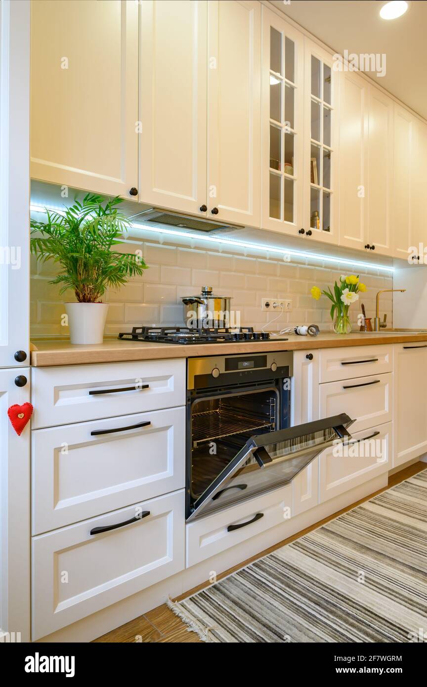 Cozy modern real kitchen interior Stock Photo - Alamy