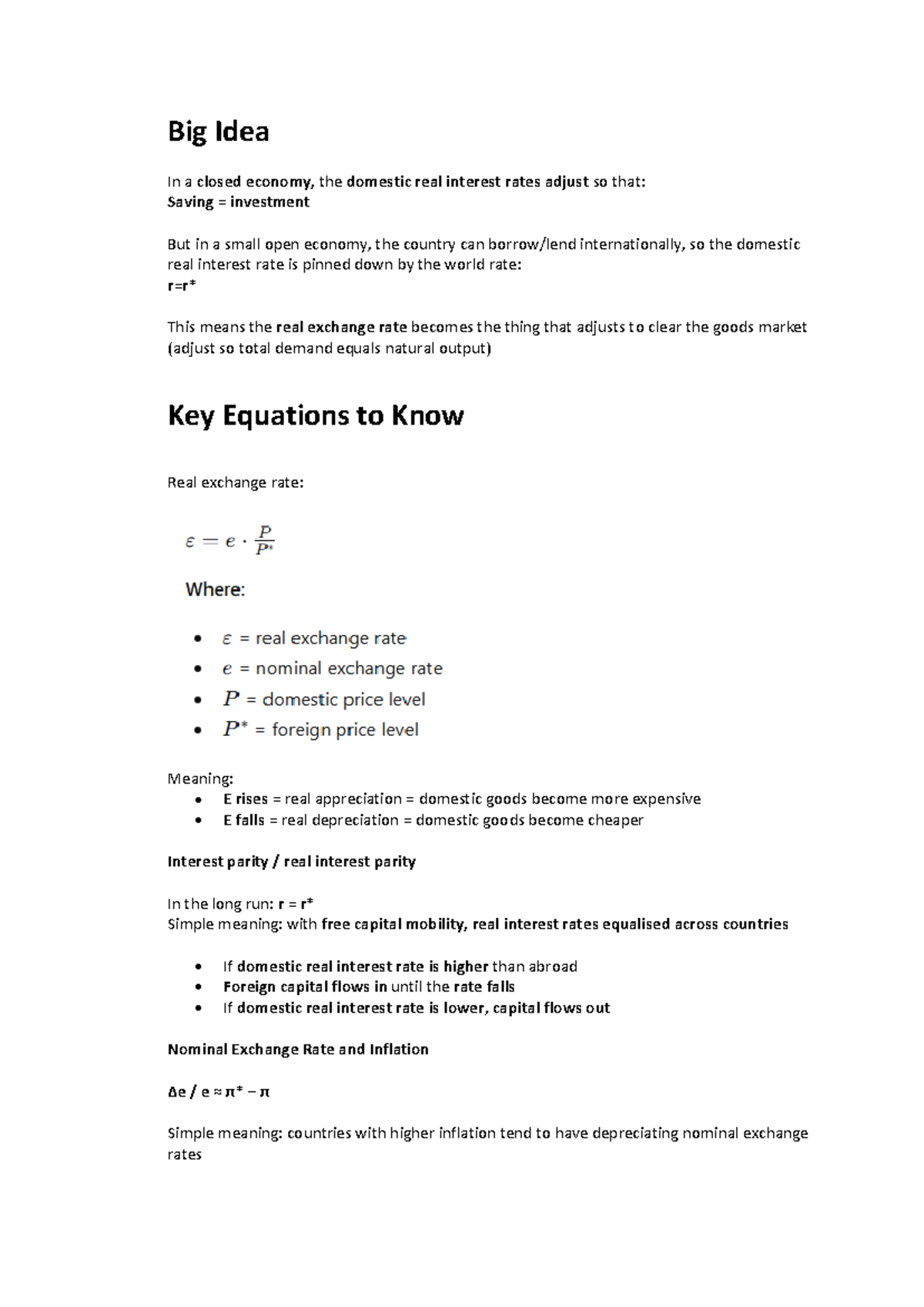 Week 7 Notes: Real Interest Rates and Exchange Rate Adjustments - Studocu