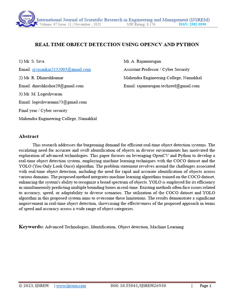 Real Time Object Detection Using OpenCV and Python | PDF