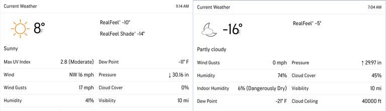 Friday temperature forecast. RealFeel is "Dangerous Cold" (this is in ...