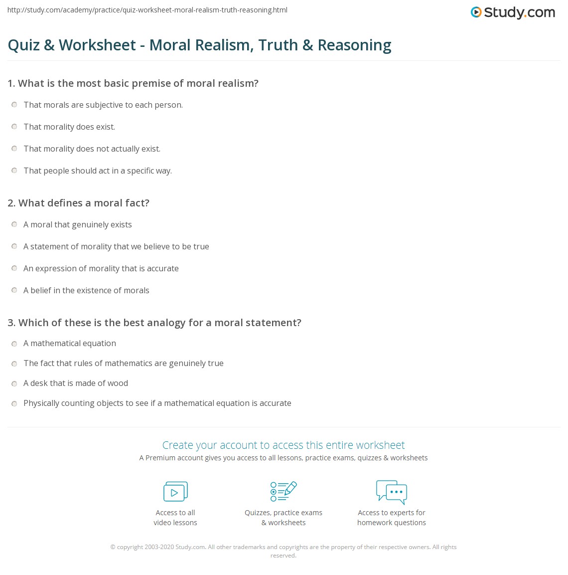 Quiz & Worksheet - Moral Realism, Truth & Reasoning | Study.com