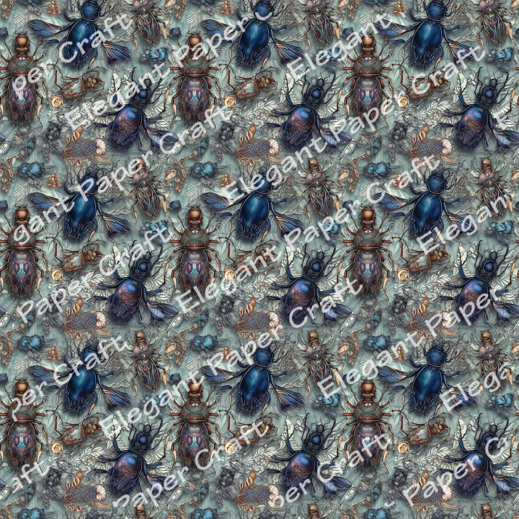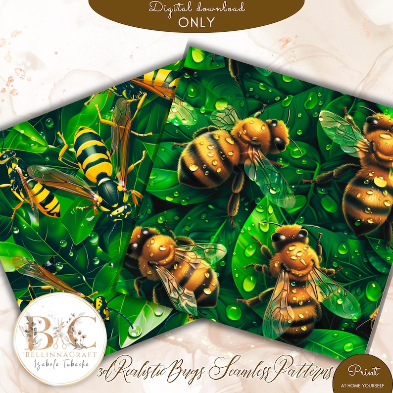 3D Realistic Bugs Seamless Digital Paper, Insects Leaf Patterns With ...