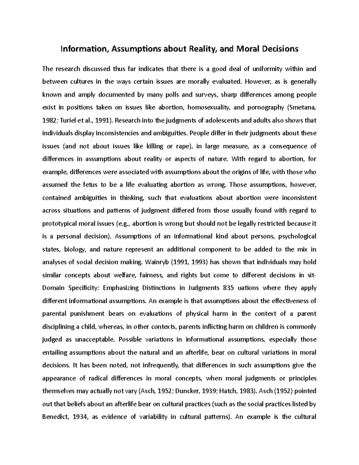 Information, Assumptions about Reality, and Moral Decisions - However ...