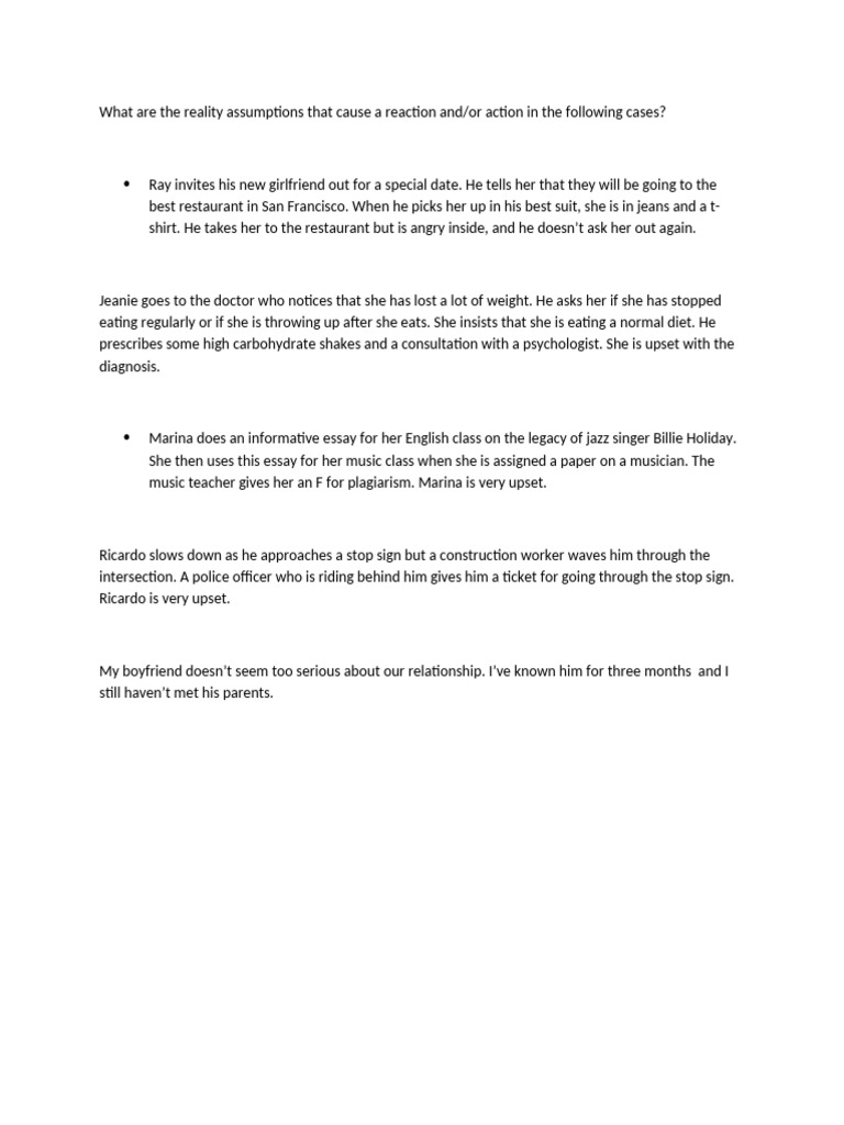 What Are The Reality Assumptions That Cause A Reaction. | PDF