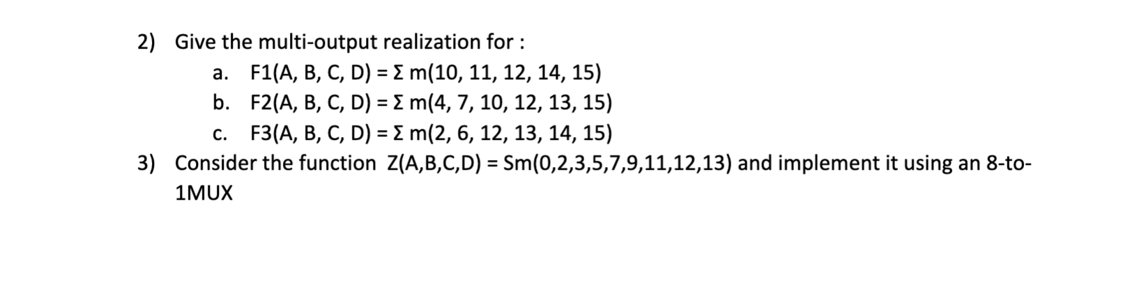 Solved 2) Give the multi-output realization for : a. F1(A, | Chegg.com