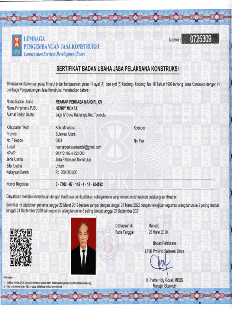 Sertifikat Usaha Konstruksi REAMAR PERKASA | PDF