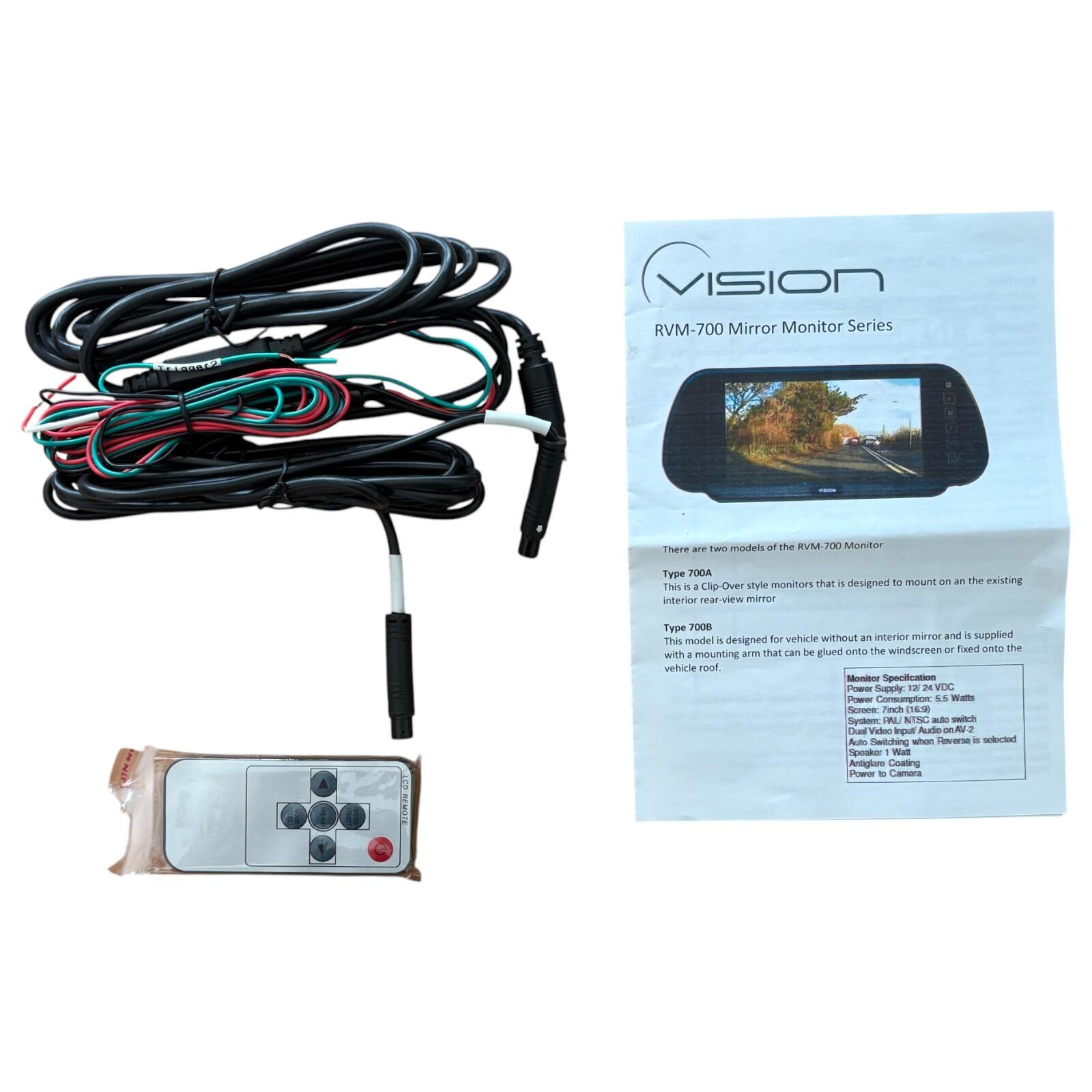 Vision 7" Rear view mirror monitor (clip-on) with remote 12/24V 5.5W ...