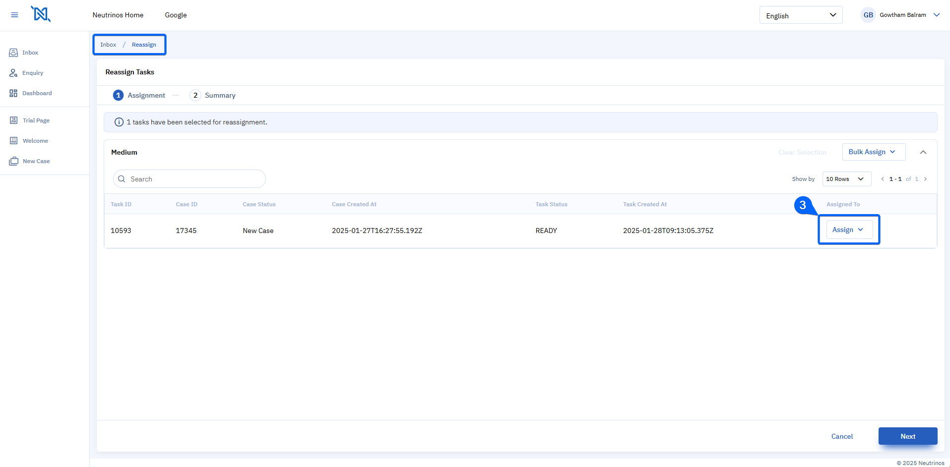Reassign Task screen