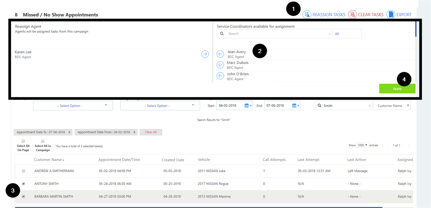 Reassign Tasks screen