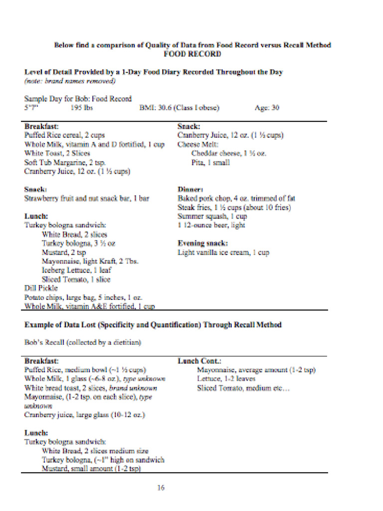 24 Hour Food Recall Example | PDF | Cooking, Food & Wine | Wellness