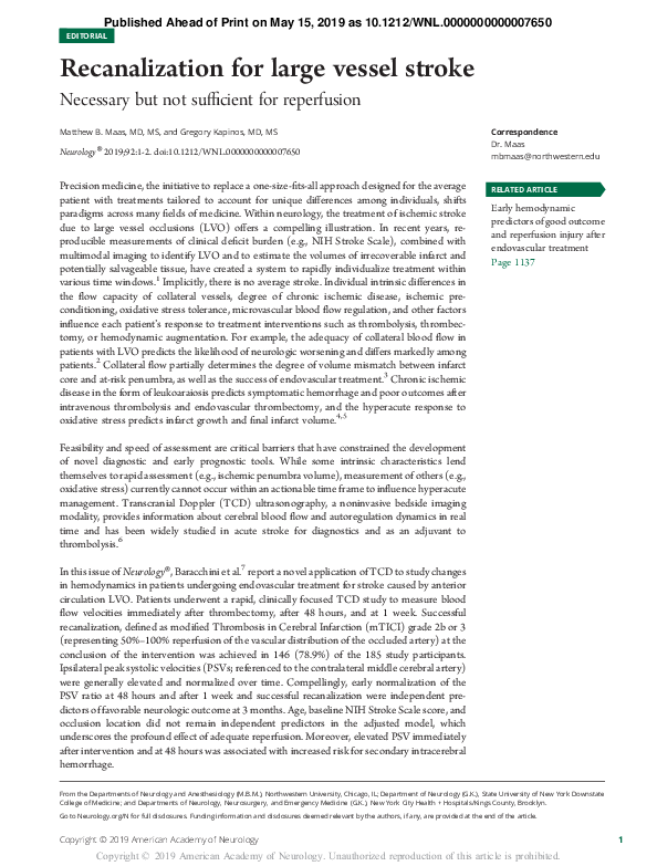 AAN Recanalization Therapy for Acute Ischemic Stroke Guideline Comment ...