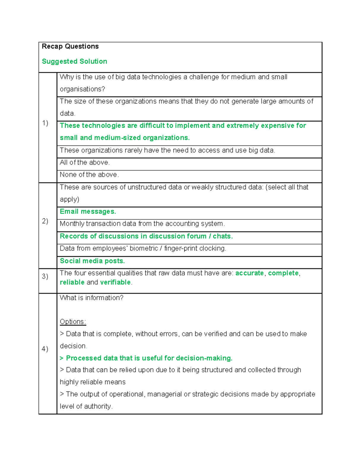 Learning Unit 1 - Solution for Recap questions - Left Aligned - Recap ...