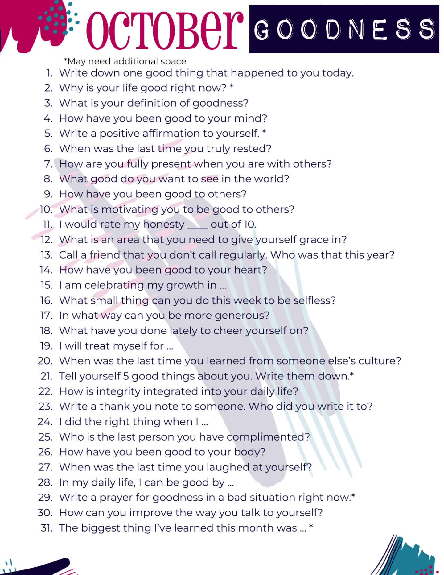 Thrive In Five Journal: October Prompts – Goodness - Ryce's Pieces