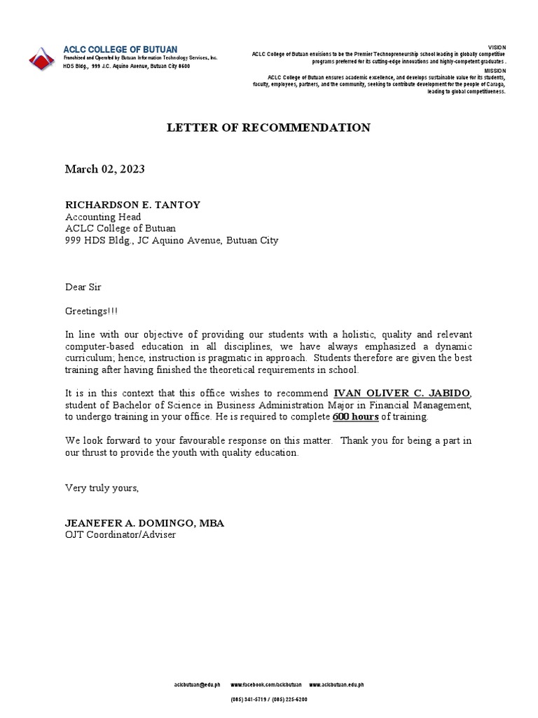 Free Letter of Recommendation Template | PDF, Word | Jurizmo
