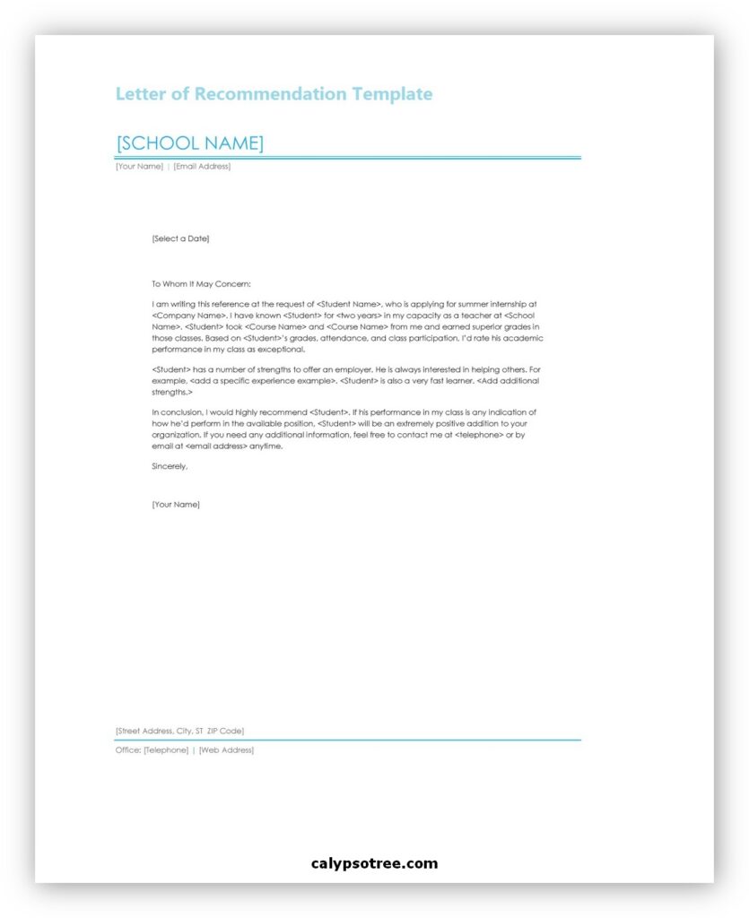60 Best Letter Of Recommendation Example & Template - Calypso Tree