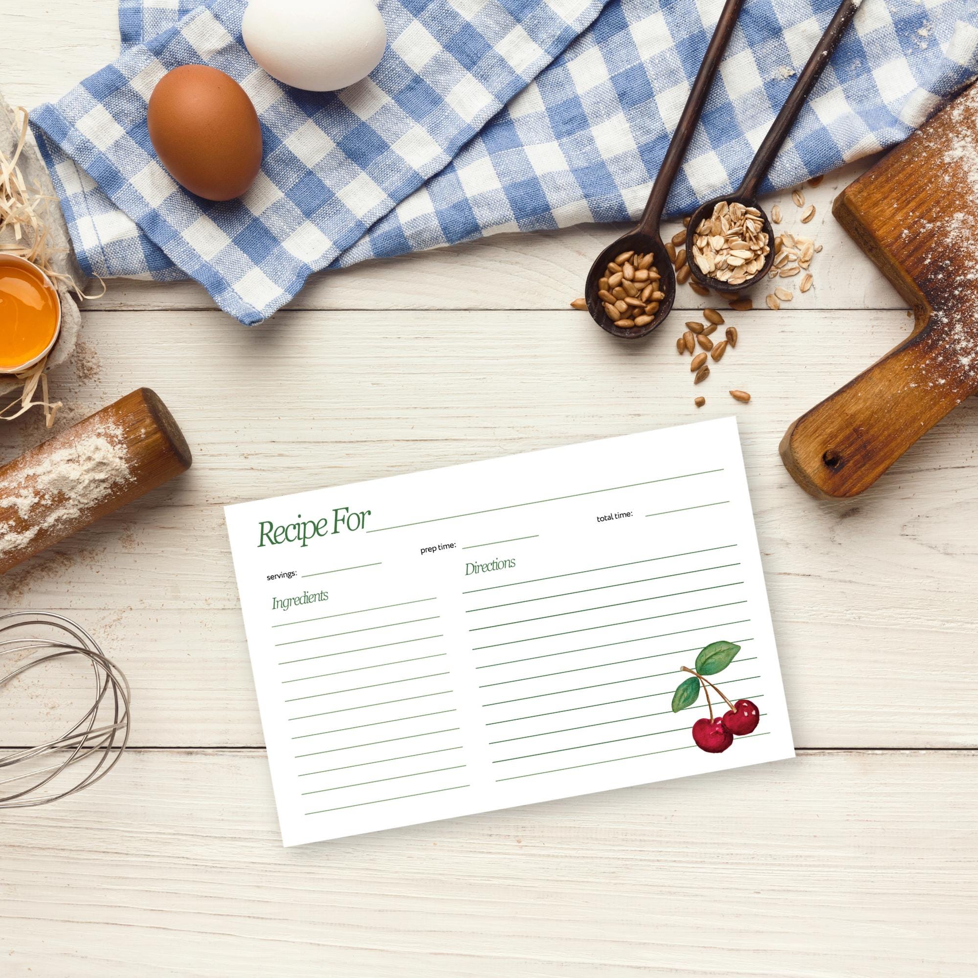 Retro Cherry Recipe Cards and Notepad, Cute Recipe Card Set ...