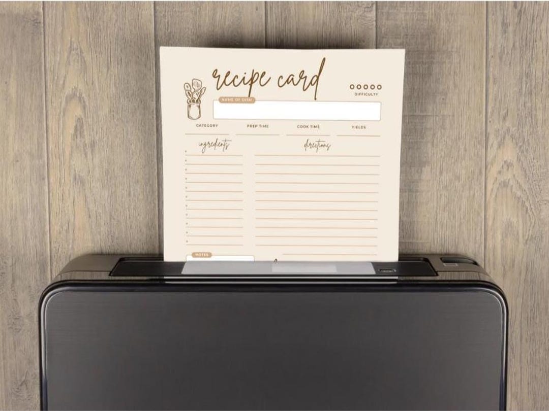 Printable Recipe Note Page | Digital Editable Recipe Card, Recipe ...