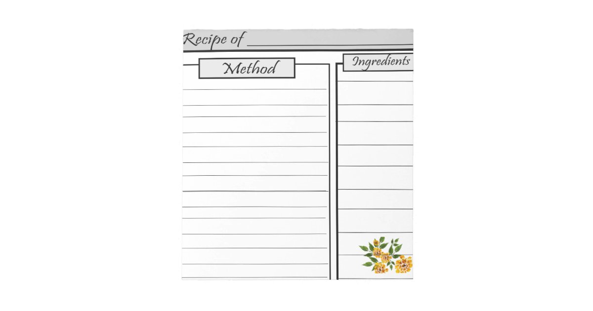 Basic Recipe Pages Notepad | Zazzle