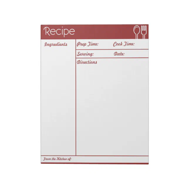 Simple Line-less Red Recipe Page Notepad | Zazzle