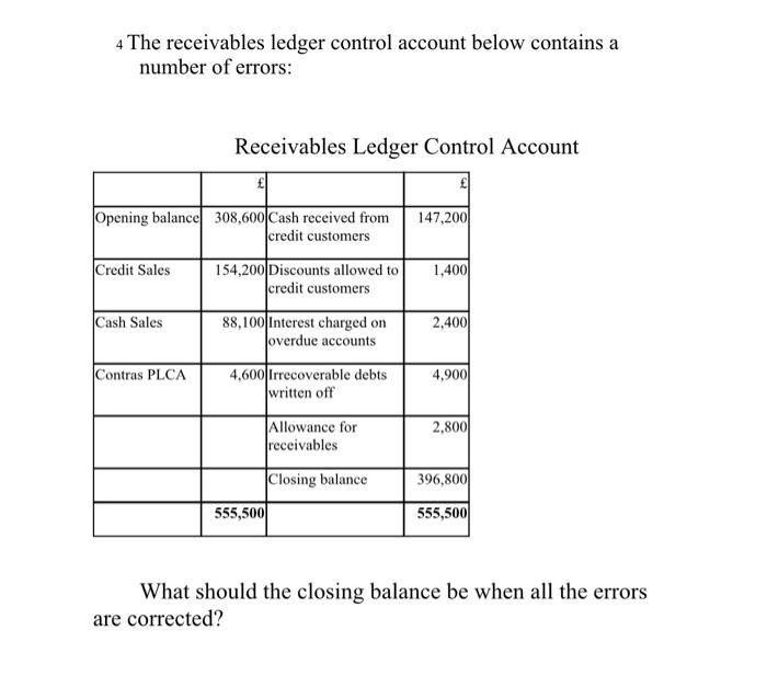 Solved 4 The receivables ledger control account below | Chegg.com