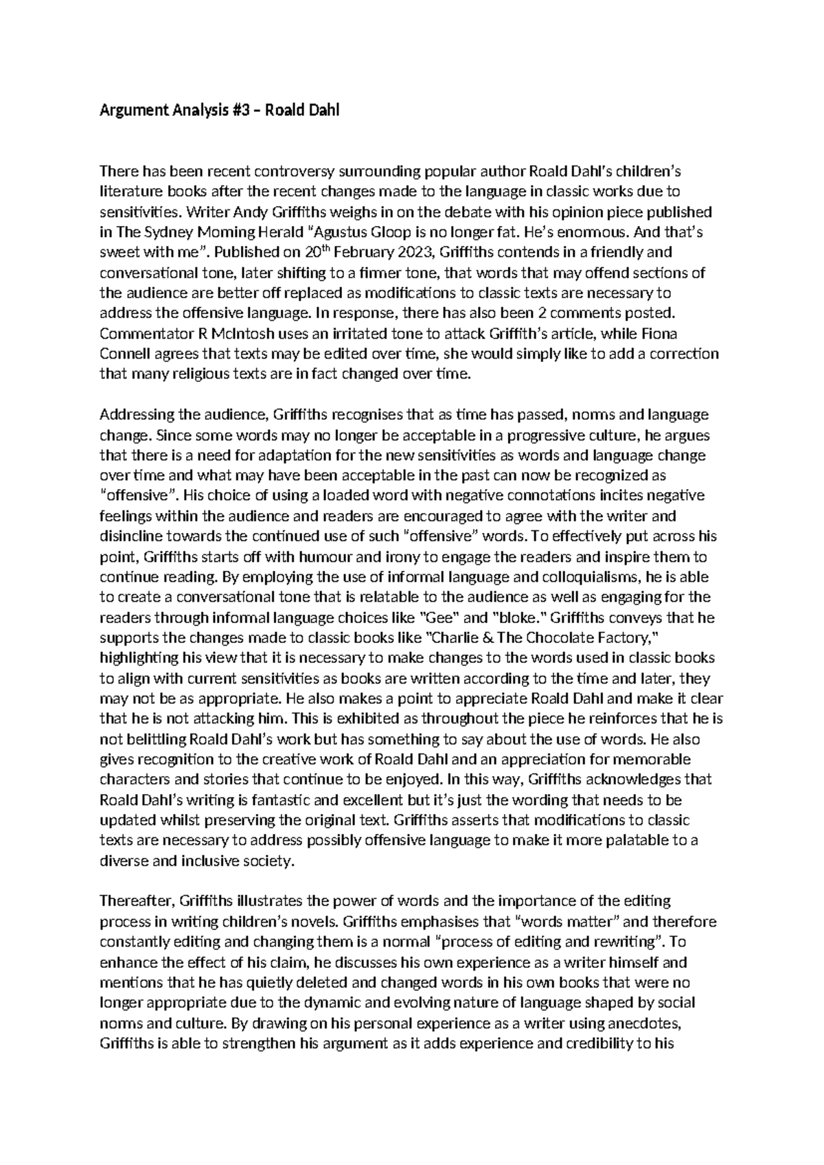 Argument Analysis #3 – Roald Dahl - Argument Analysis #3 – Roald Dahl ...
