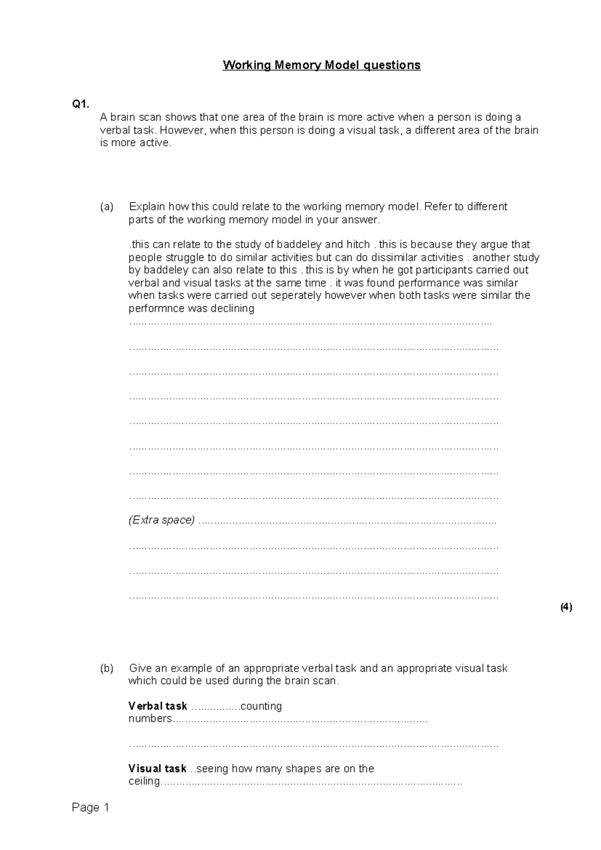 AQA A Level Psychology Memory Questions with Correct Answers. - AQA A ...