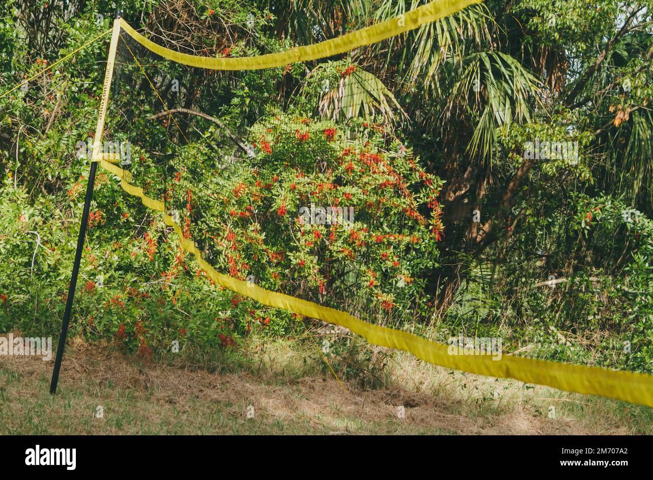 Volleyball net at backyard wedding reception Stock Photo - Alamy