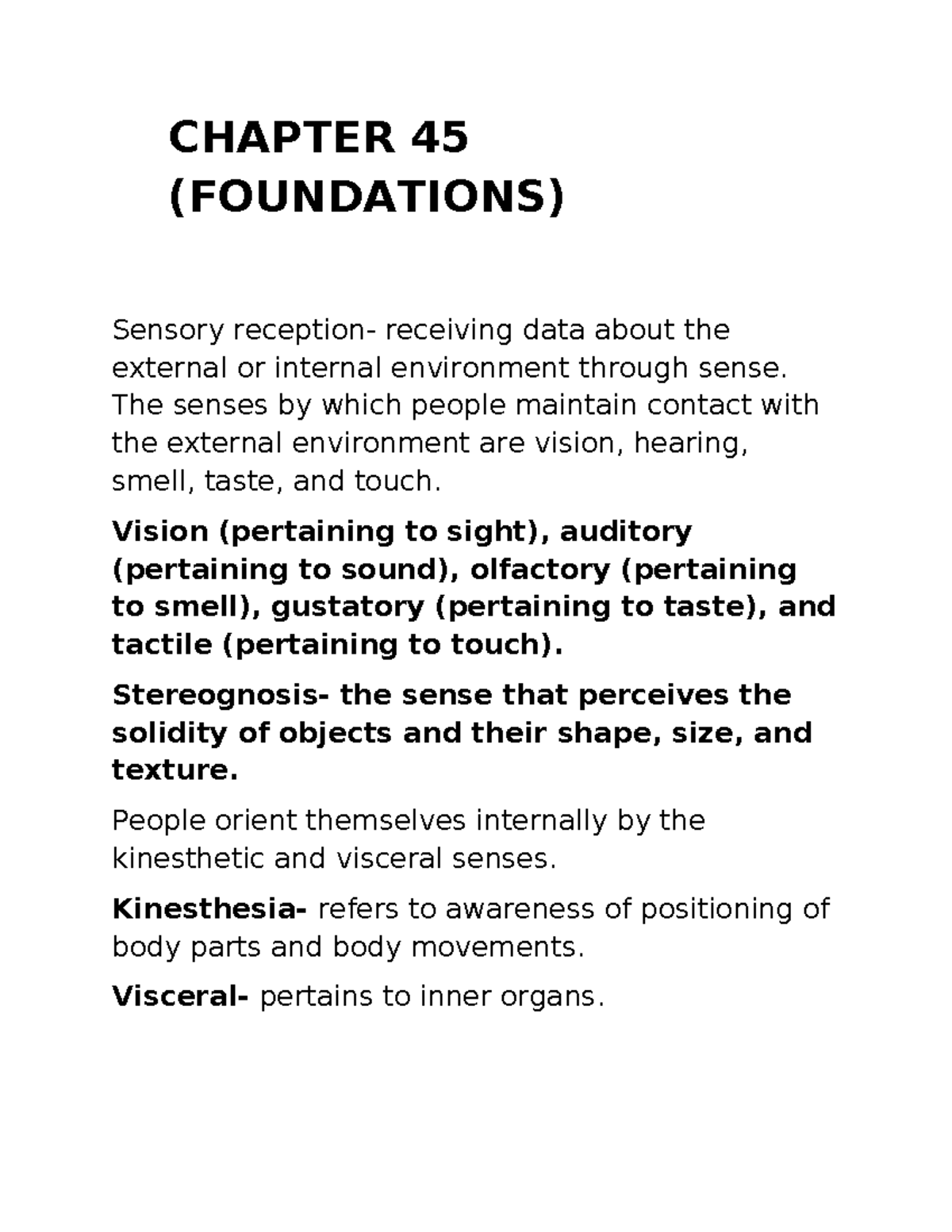 Chapter 45: Foundations of Sensory Reception and Perception - Studocu