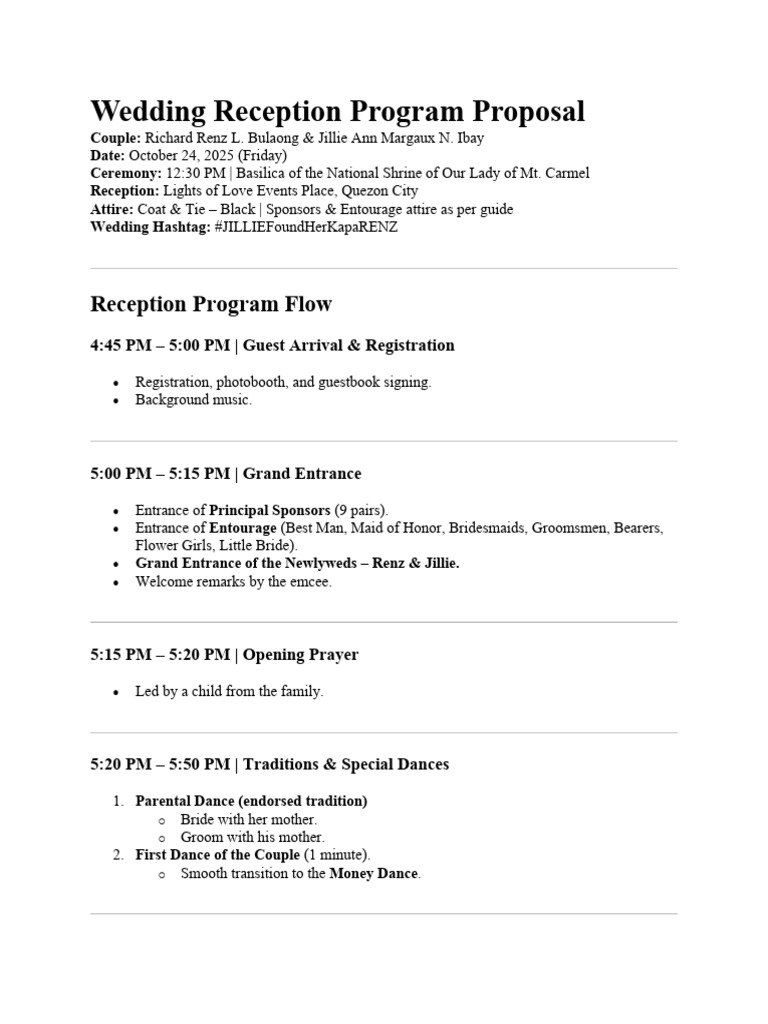 Wedding Reception Program Proposal (1) | PDF