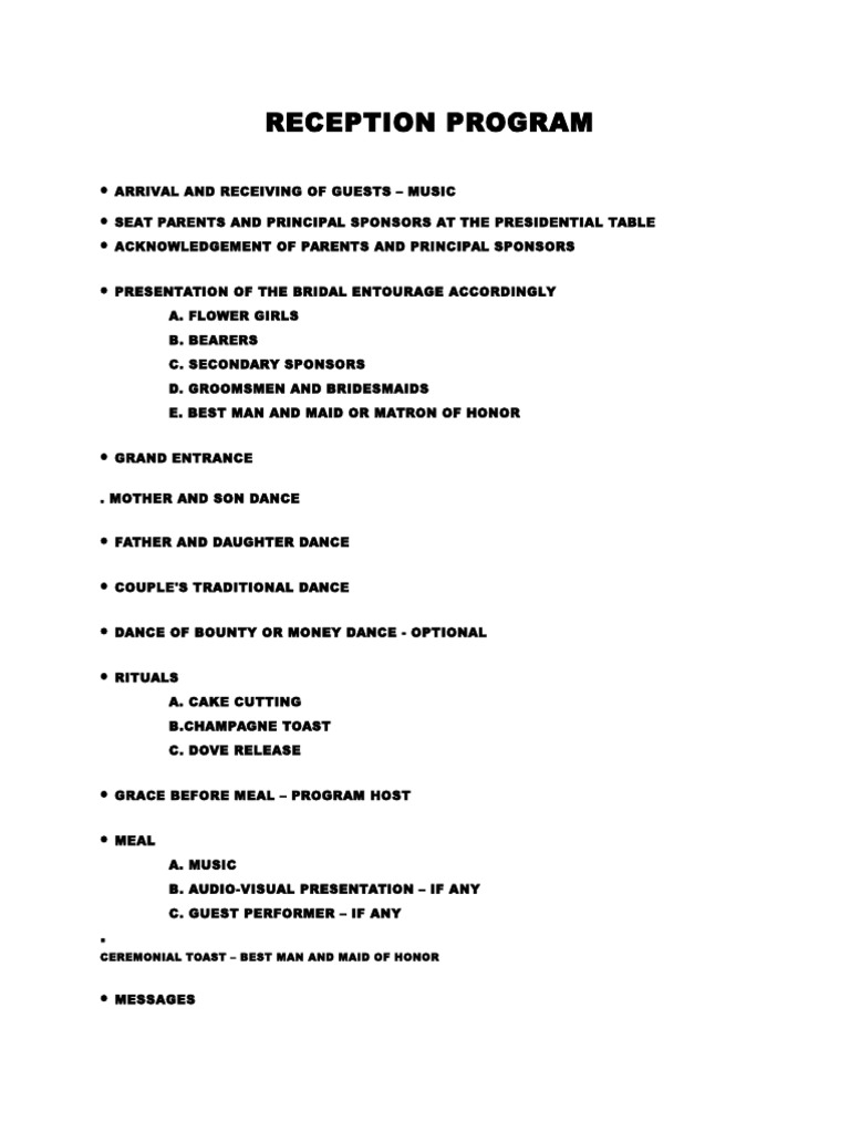 Wedding Reception Program Outline | PDF | Art