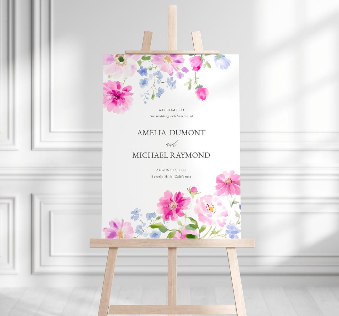 Editable Spring Wedding Welcome Sign Template | Watercolor Florals Sign ...