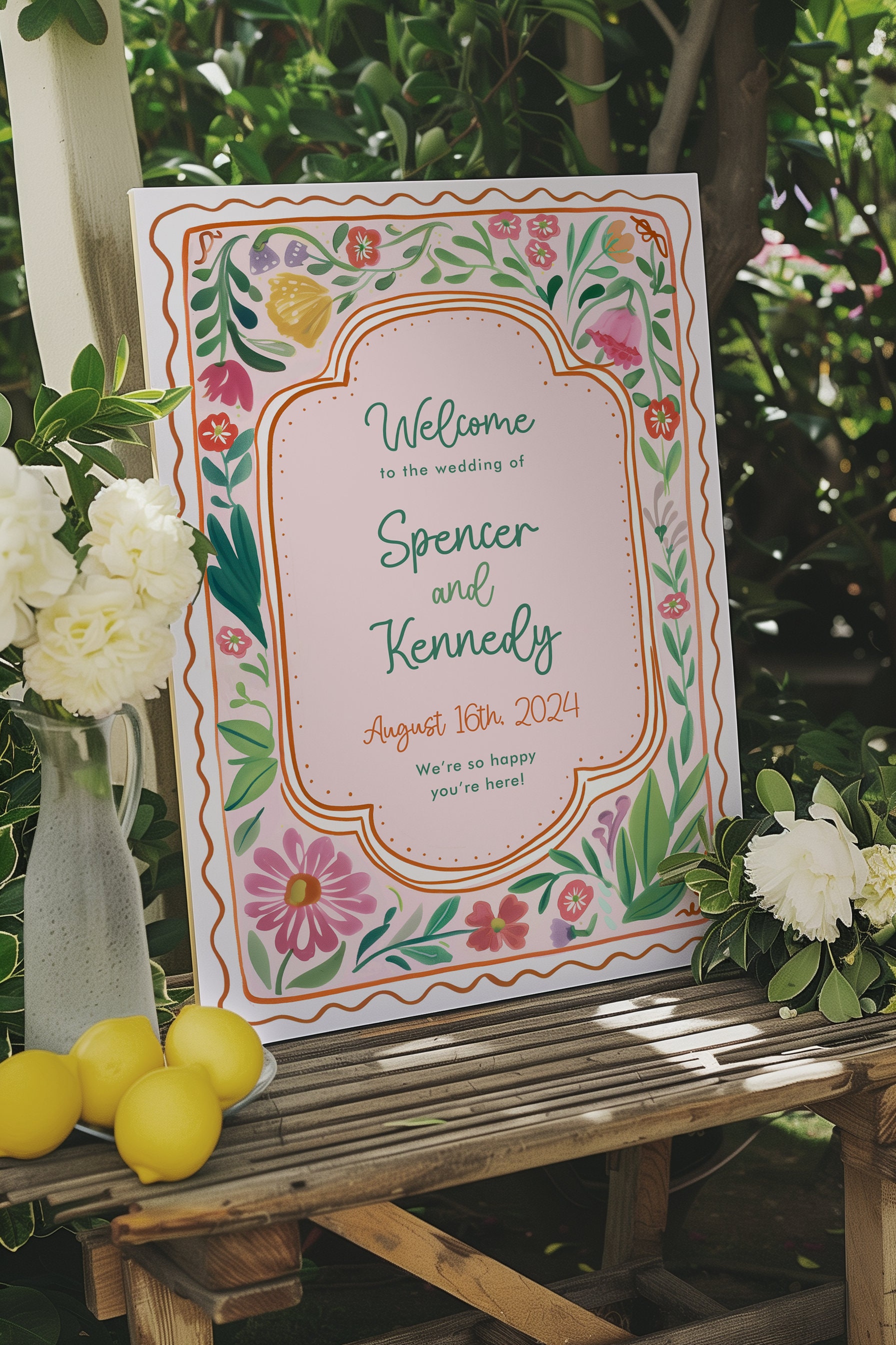 Personalised Spring Wedding Welcome Sign - Colourful