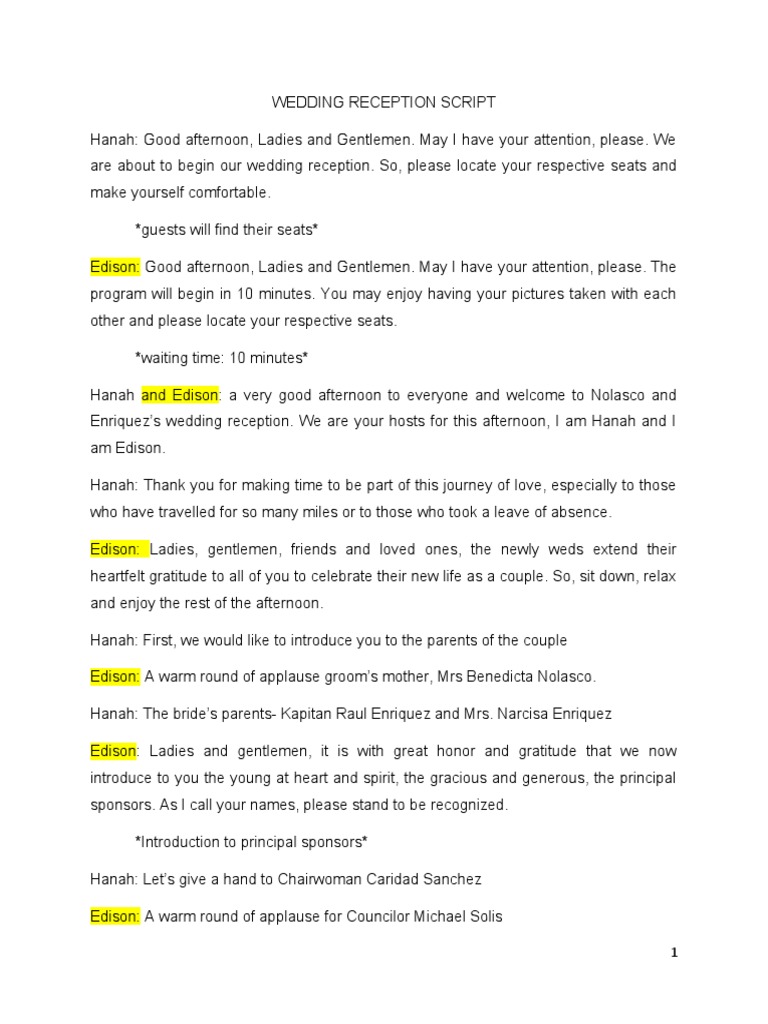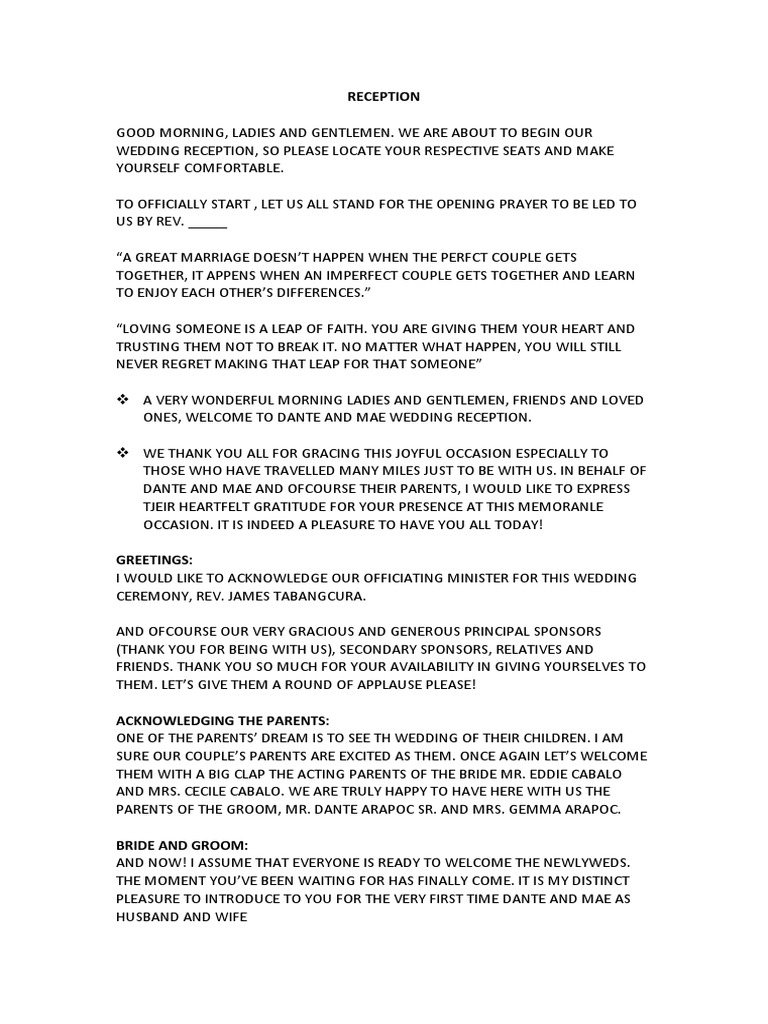 Sample emcee script for wedding reception - paytolf