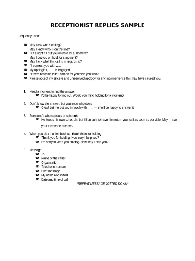 Receptionist Replies Sample: Repeat Message Jotted Down | PDF ...