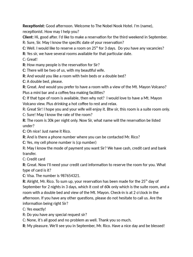 Script Hotel Receptionist New | PDF