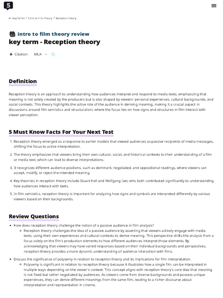 Reception Theory - (Intro To Film Theory) - Vocab, Definition ...