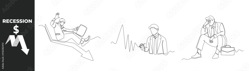 Single one line drawing recession economy set concept. Recession 2023 ...