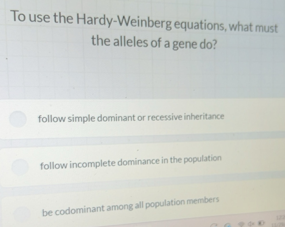 Solved: To use the Hardy-Weinberg equations, what must the alleles of a ...