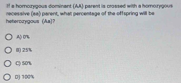 Solved: If a homozygous dominant (AA) parent is crossed with a ...