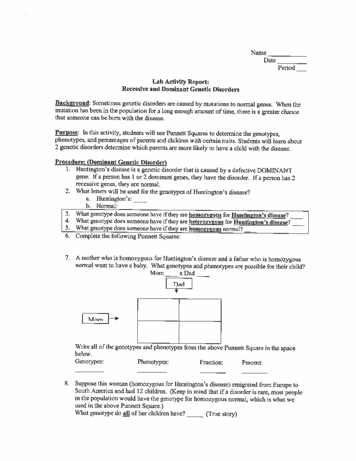 Genetics Lab Activity Report: Recessive & Dominant Disorders - Studocu