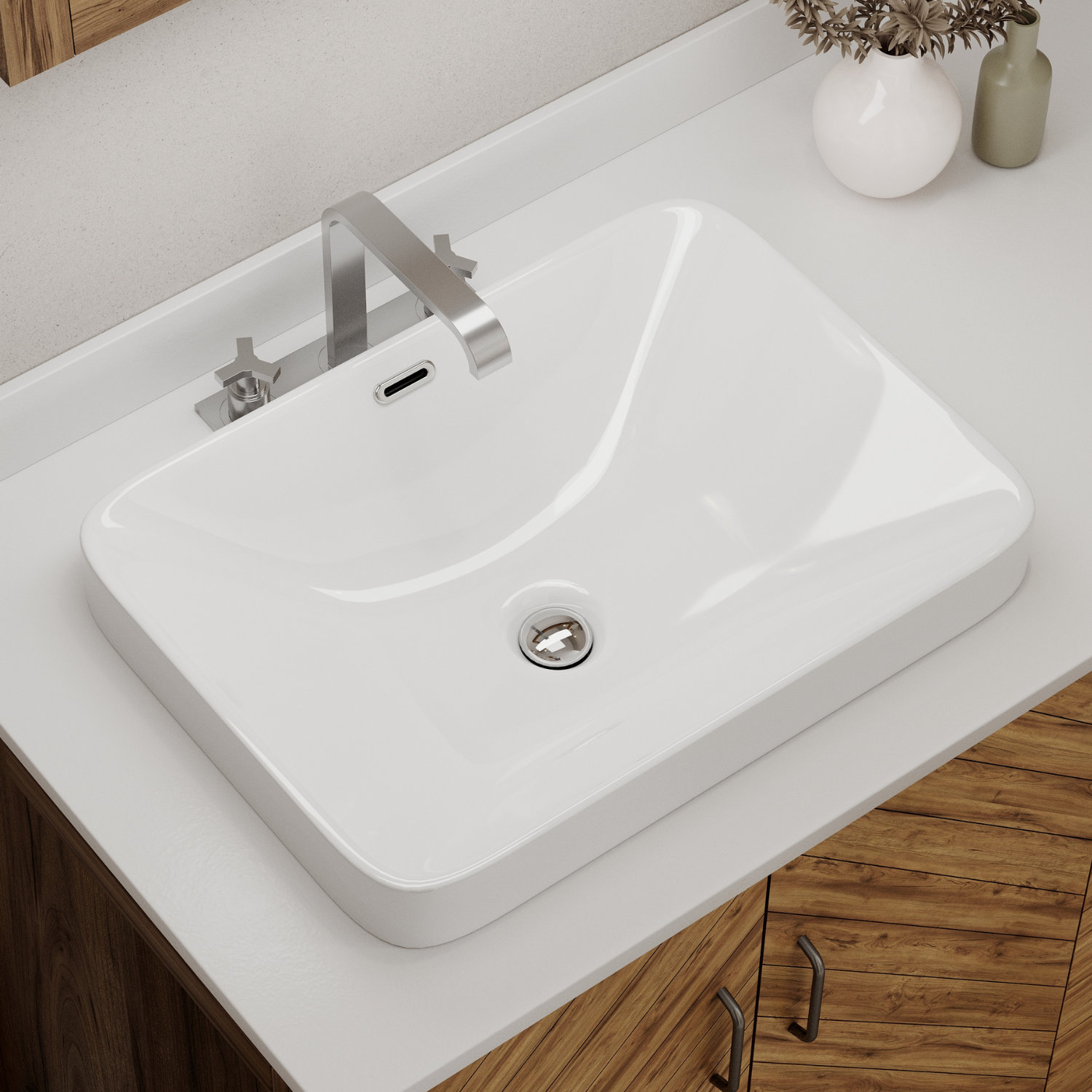 Los Flexi 17'' x 15'' Semi Recessed Bathroom Sink, Rectangular Bathroom ...