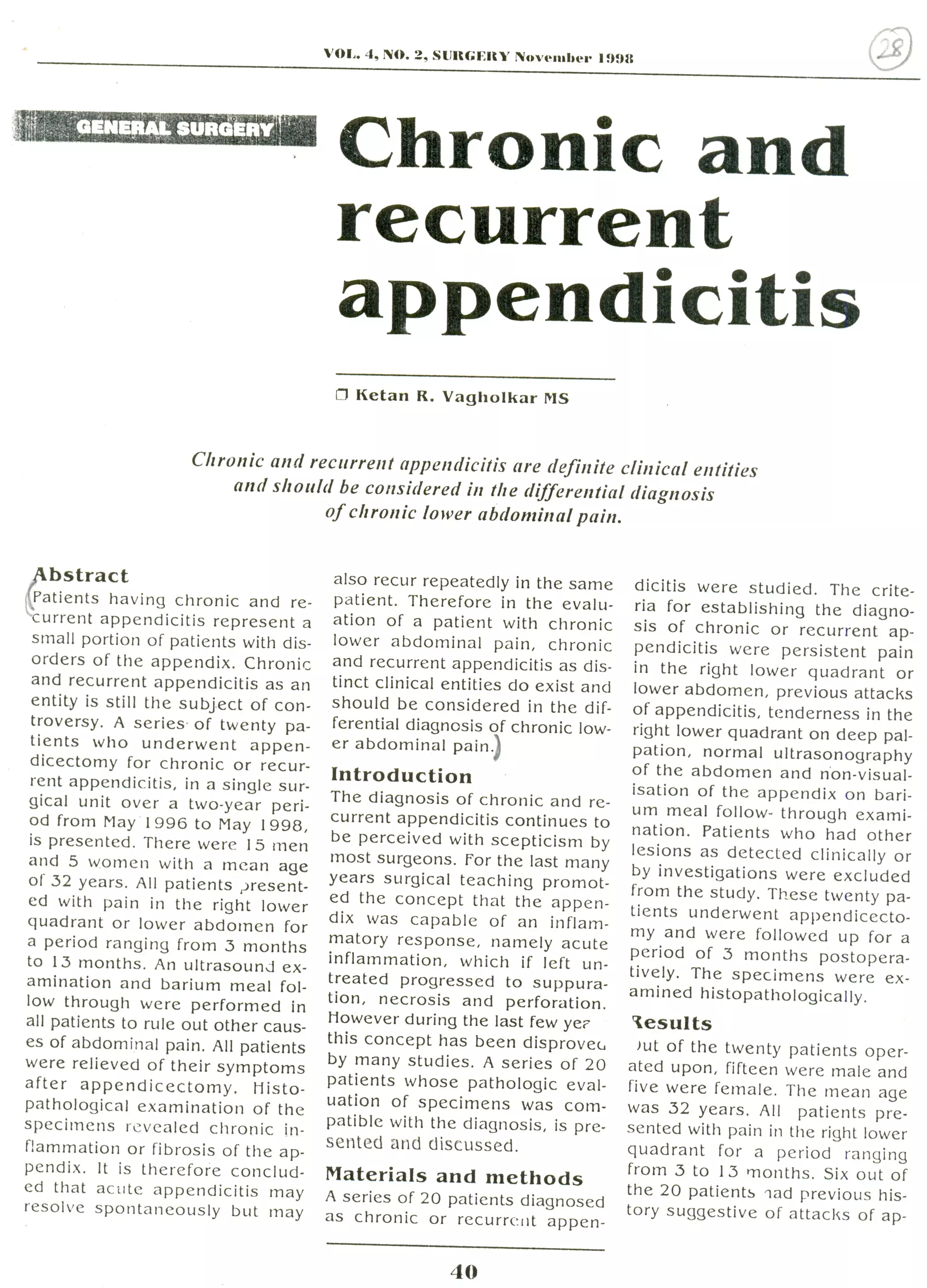 Chronic and recurrent appendicitis | PDF
