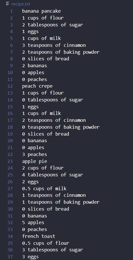 Solved Problem Statement: Trying to create a recipe manager | Chegg.com