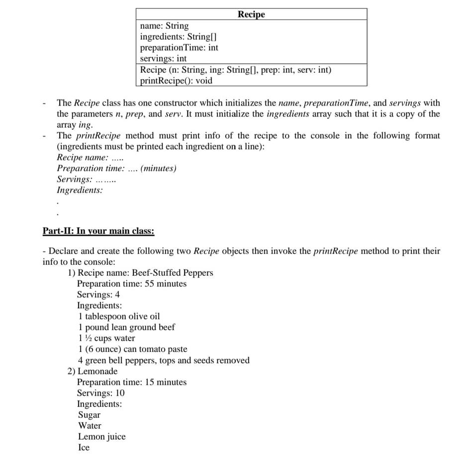 Solved Recipe name: String ingredients: String[] preparation | Chegg.com