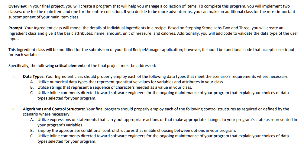 Create a Recipe Manager: Coding Data Types for Ingredients | Course Hero