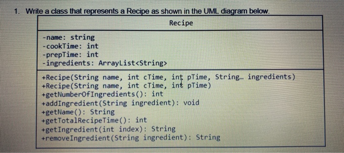 Solved 1. Write a class that represents a Recipe as shown in | Chegg.com