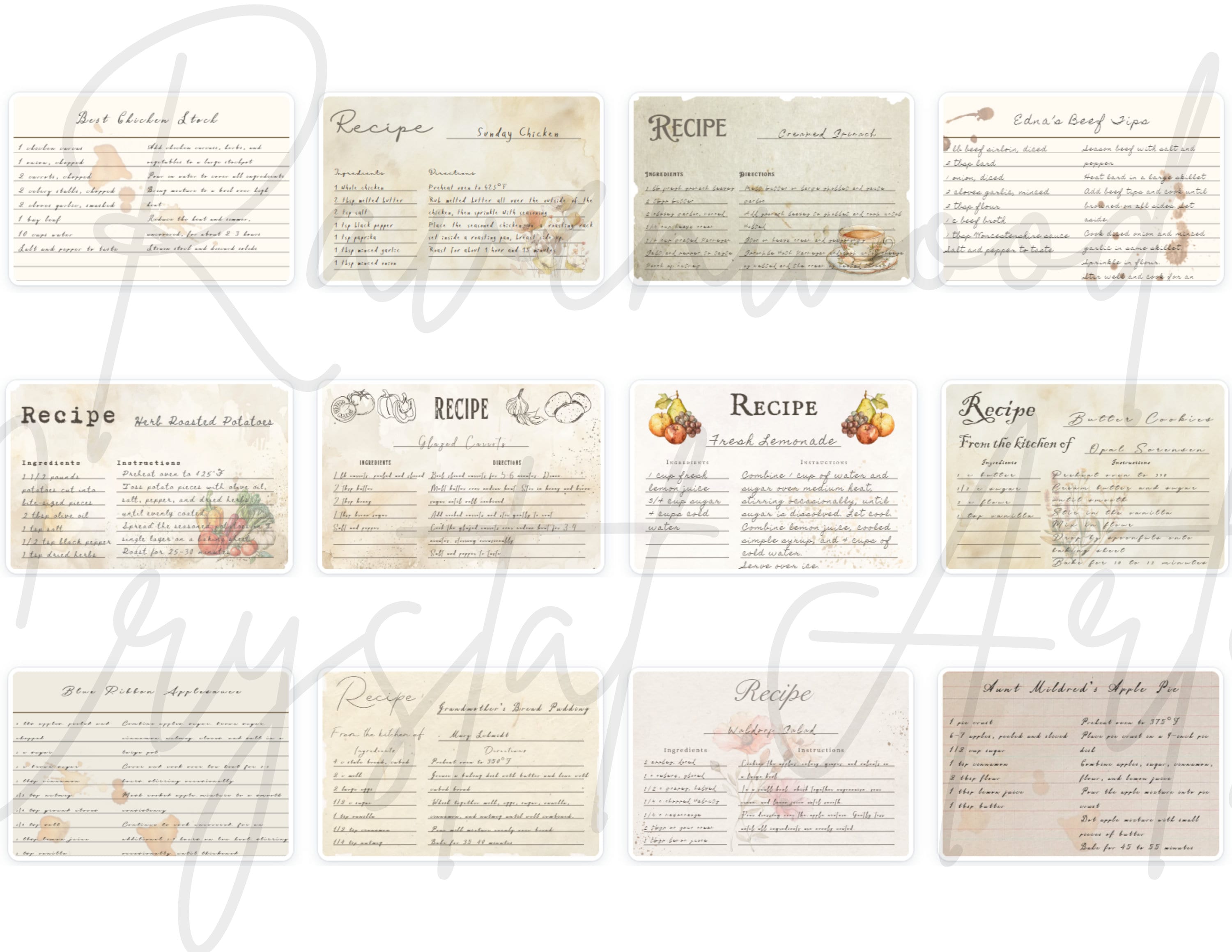 Vintage Recipe Clipart | Printable Recipe Cards | Cooking Clip Art ...