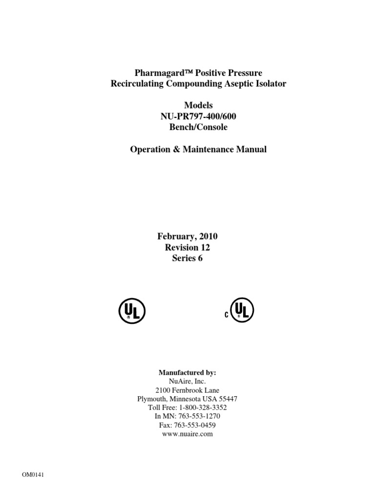 Pharmagard Recirculating Compounding Aseptic Isolator Models NU-PR797 ...