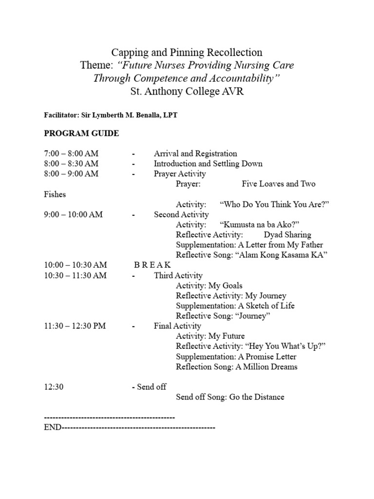 Grade 10 Recollection Program Template - "Living with Purpose" - Studocu