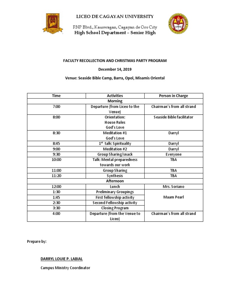 Recollection Program for Graduating Students | PDF | Covenant (Biblical ...